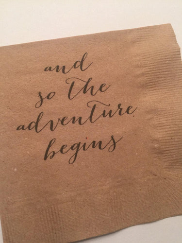 And So The Adventure Begins Wedding Bridal Shower Baby Shower Kraft Cocktail or Dinner Napkins, Set of 25