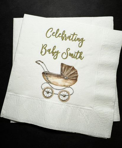 Baby Carriage Gender Neutral Baby Shower Gold Baby Shower Personalized Cocktail, Luncheon or Dinner Napkins Set of 25