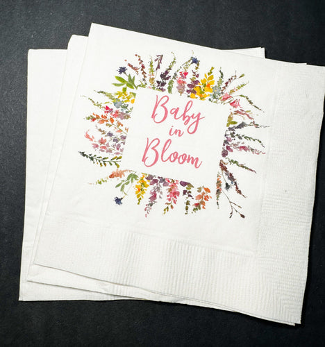 Baby in Bloom Spring Summer Baby Shower Wildflower Personalized Cocktail, Luncheon or Dinner Napkins Set of 25