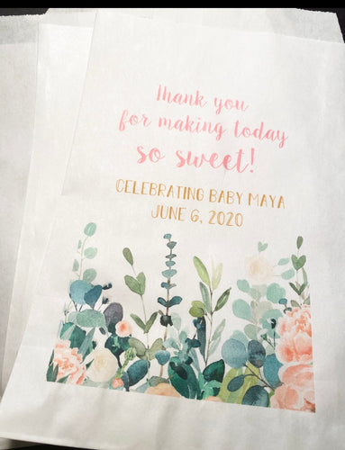 Baby Shower Sweet Favor Bags Succulent Spring Summer Floral Personalized Favor Bags Treat Bags, Set of 10