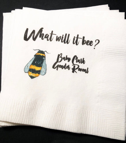 Bee Gender Reveal What Will it Bee Personalized Bee Honey Themed Baby Shower Cocktail, Luncheon or Dinner Napkins Set of 25