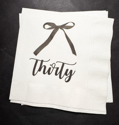 Black Bow 30th Birthday Thirty Birthday Black Coquette Bow Cocktail Party Cocktail, Luncheon or Dinner Napkins Set of 25