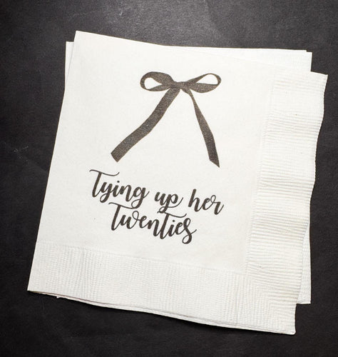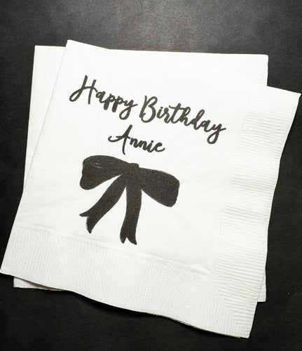 Black Bow Tying Uo Her Twenties 30th Birthday Thirty Birthday Black Coquette Cocktail Party Cocktail, Luncheon or Dinner Napkins Set of 25