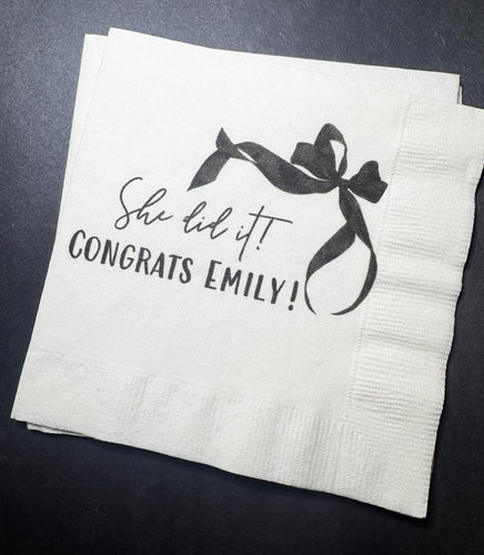 Black Bow Graduation Party Class of 2025 She Did It Bow Graduation Party Personalized Cocktail, Luncheon or Dinner Napkins Set of 25