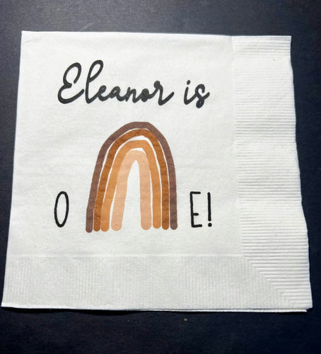 Boho Rainbow First Birthday Modern Bohemian Neutral Party Personalized Cocktail, Luncheon or Dinner Napkins Set of 25