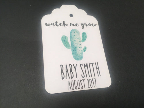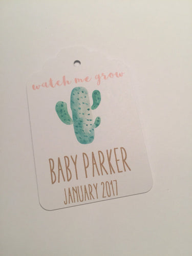 Cactus Succulent Personalized Watch Me Grow Baby Shower Favor Tags, Set of 24