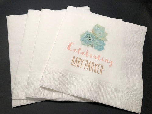 Cactus Succulent Personalized Baby Shower Cocktail, Luncheon or Dinner Napkins Set of 25