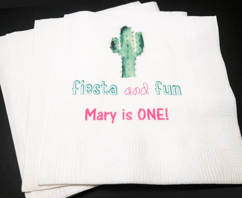 Cactus First Fiesta Fiesta and Fun Girl Birthday Personalized Cocktail, Luncheon or Dinner Napkins Set of 25