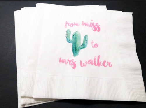 Cactus Succulent Bridal Shower Miss to Mrs Bridal Fiesta Cocktail, Luncheon or Dinner Napkins Set of 25