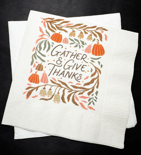 Thanksgiving Gather & Gobble Cocktail Napkins, Set of 25