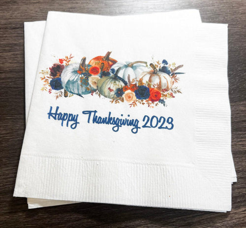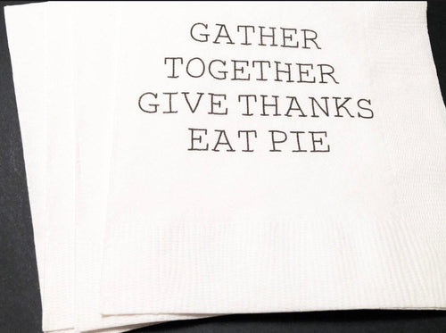 Thanksgiving Gather Give Thanks Pumpkin Fall Thanksgiving Dinner Table Cocktail, Luncheon or Dinner Napkins Set of 25