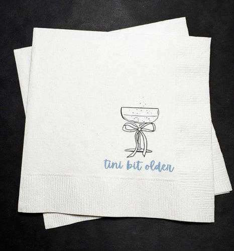 A Tini Bit Older Espresso Martini Pink Bow Birthday Party Bridal Shower Personalized Cocktail, Luncheon or Dinner Napkins Set of 25