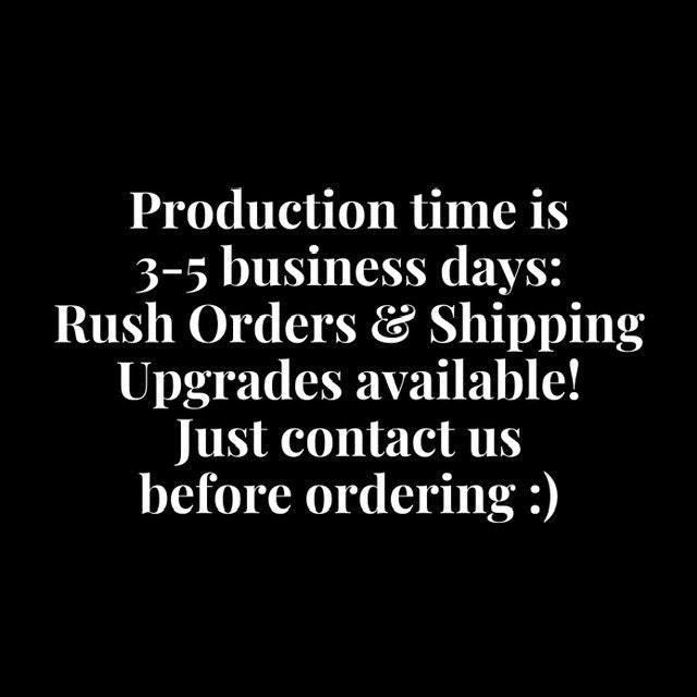 ***We do NOT guarantee dates inside the ETA you are provided by Etsy. This is an estimate only, and if you purchase something that you need within the dates you are provided, know that it is NOT guaranteed you will receive by that date, and putting that date into notes IS NOT the same as arranging a rush order. Items will be shipped in stated production time and if they are not received by your "need by" date that was not discussed prior to ordering, we will NOT be issuing a refund under any circumstance, and Etsy backs us up in this. Please, please contact seller before ordering if you are needing this item by a certain date. *If customization demands or required by dates that require a rush that was not arranged prior to ordering are put into notes without speaking to seller, order will automatically be cancelled and refunded*