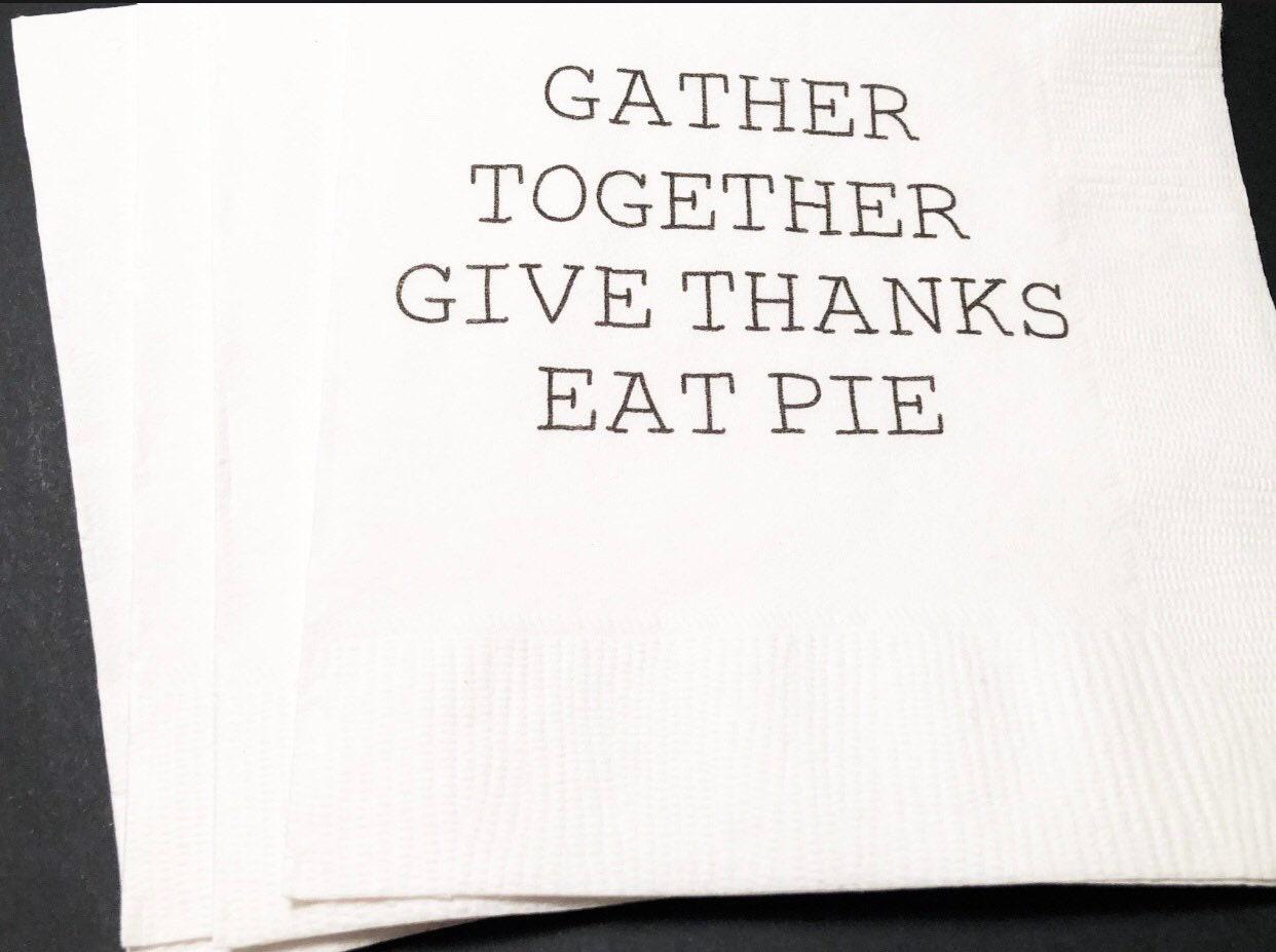 These Thanksgiving themed cocktail napkins are perfect for that Thanksgiving event you are planning! These 3 ply white cocktail napkins are approximately 5x5, and are printed with design and wording as shown. Please note these napkins do not come personalized, and there are no other customization options at this time. If you have any questions about this item, please contact seller before ordering. Please also take special attention to production time and make sure and put your event date into notes when ordering.