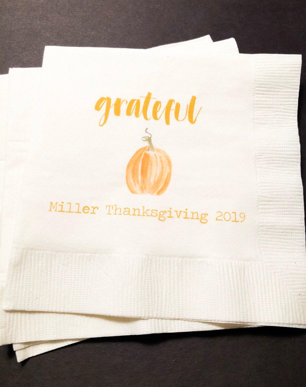 These Thanksgiving themed cocktail napkins are perfect for that Thanksgiving event you are planning! These 2 ply white cocktail napkins are approximately 5x5, and are printed with design and wording as shown. Please note these napkins do not come personalized, and there are no other customization options at this time. If you have any questions about this item, please contact seller before ordering. Please also take special attention to production time and make sure and put your event date into notes when ordering.
