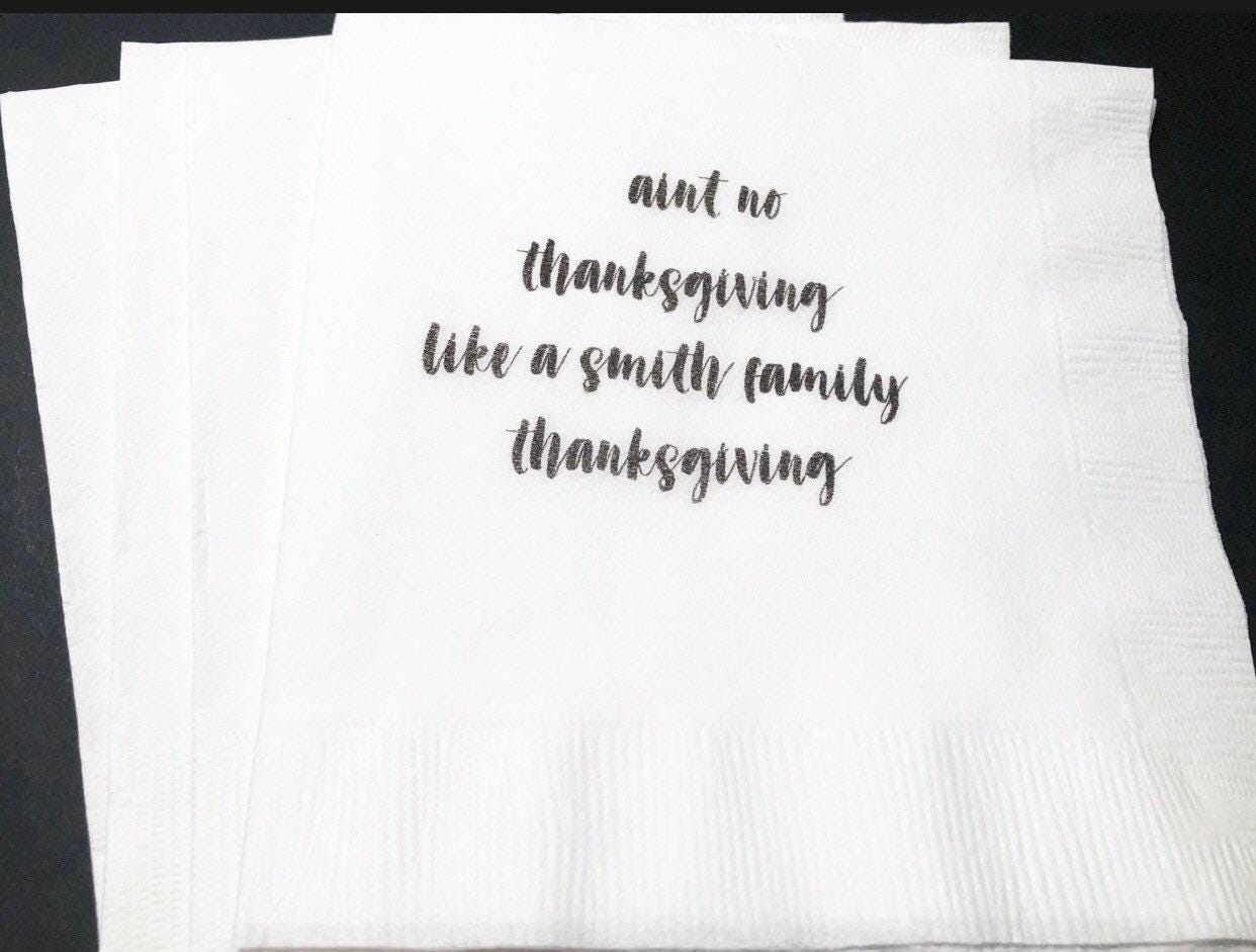 These Thanksgiving themed cocktail napkins are perfect for that Thanksgiving event you are planning! These 3 ply white cocktail napkins are approximately 5x5, and are printed with design and wording as shown. Please note these napkins do not come personalized, and there are no other customization options at this time. If you have any questions about this item, please contact seller before ordering. Please also take special attention to production time and make sure and put your event date into notes when ordering.